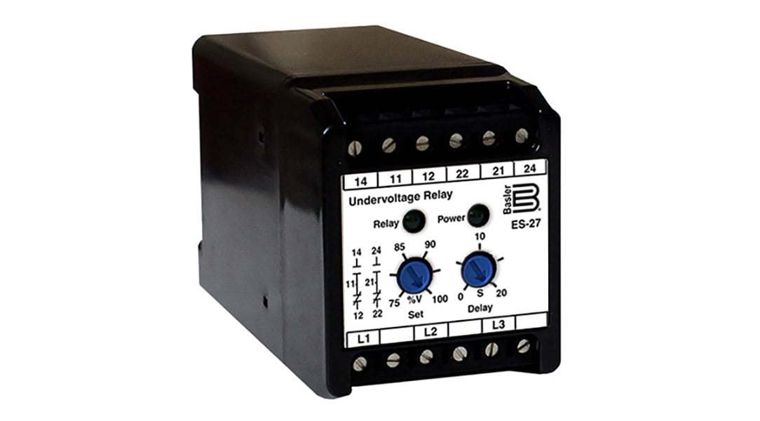 The ES-27 ac voltage relays provides voltage monitoring and protection and may be specified for use in single-phase or three-phase applications.The ES-27 provides undervoltage protection. Microprocessor-based circuitry enhances functionality and improves performance. Internal diagnostics annunciate when relay function or accuracy is compromised.