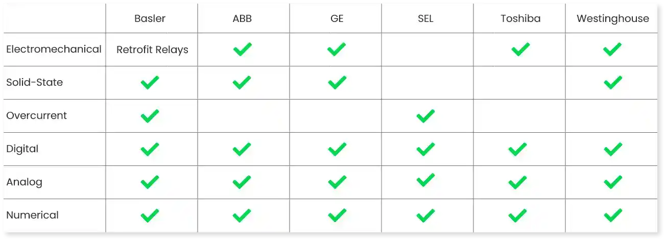 We can guide you with issues with generator protection systems and generator synchronizing systems. Our expertise includes the following excitation and voltage regulator systems, some of which are no longer supported by the OEMs: